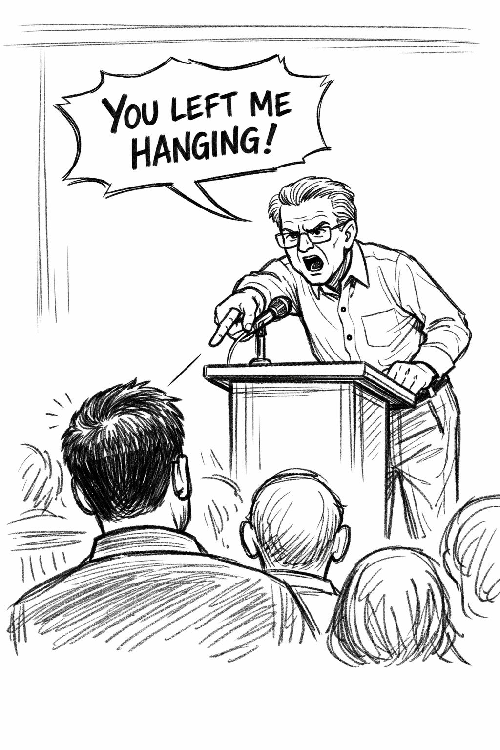 This incident was clearly at the forefront of his mind when he led the charge to have me fired. During the special called member’s meeting, where I was informally put on trial—he stated, emphatically, from the podium: “You left me hanging! I stood by you, whole-heartedly, and you left me hanging!”