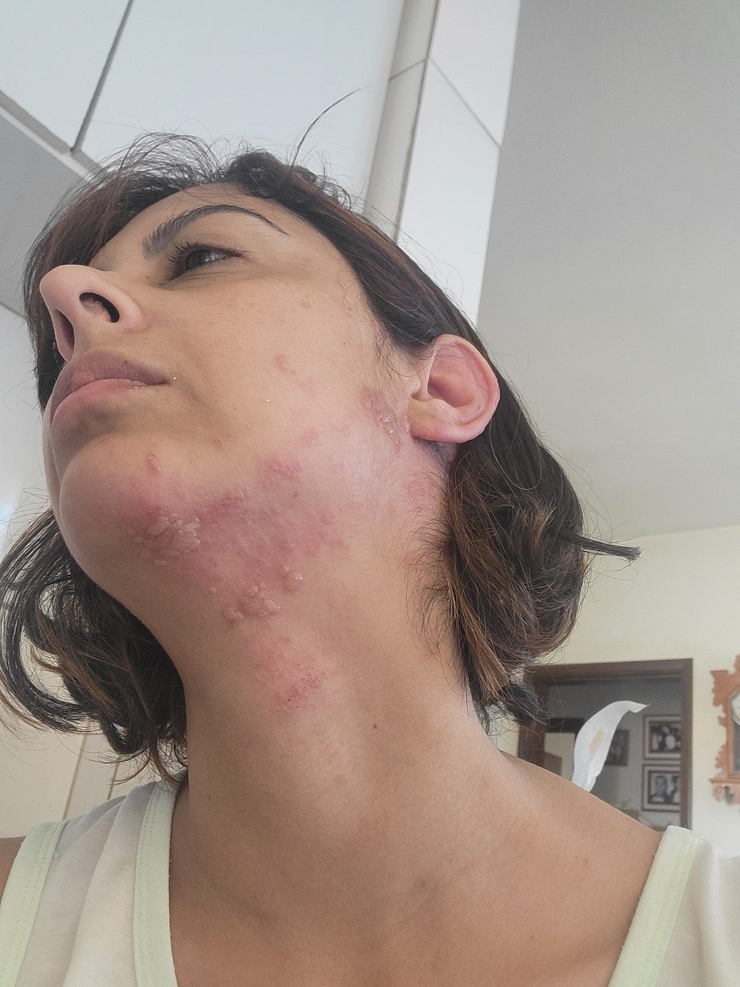 The shingles spread across my wife’s face, neck, ear, the back of her head, and started to spread around her eyes (which can cause blindness). As anyone who’s ever had shingles knows—the blisters and scars are but the tip of the iceburg. The real pain is deep beneath the surface, where it feels like your nerves are on fire and crawling over broken-glass. Amanda couldn’t chew food without sharp stabbing sensations shooting through her jaw. She couldn’t lay her head on the pillow without excruciating pain pulsing in her ear and across the back of her head—pain which three prescription-strength pain meds barely touched. For about a month, Amanda hardly slept or ate. She mostly cried.