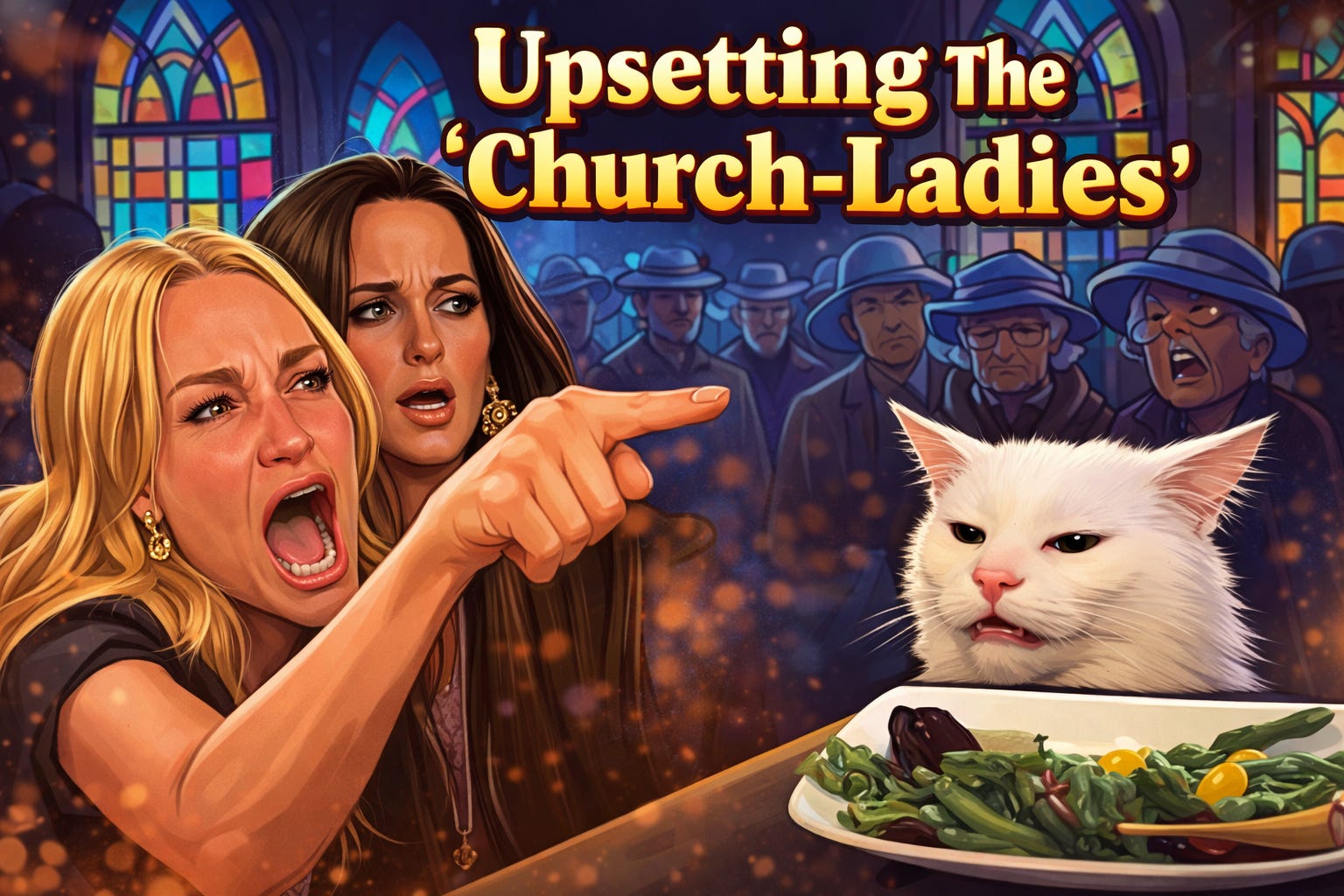 I had no issue with that stipulation. In fact, previous efforts to drive traffic directly to Immanuel had proven a failed strategy. We received dozens of first-time visitors last year, but very few returned for a second visit. The hard truth is that our guests were left underwhelmed by Immanuel’s ‘nursing-home’ levels of enthusiasm—which had less to do with our median age, and more to do with a handful of pouting ‘church-ladies’ (of both sexes) with “#NotMyPastor” stamped across their sullen faces.